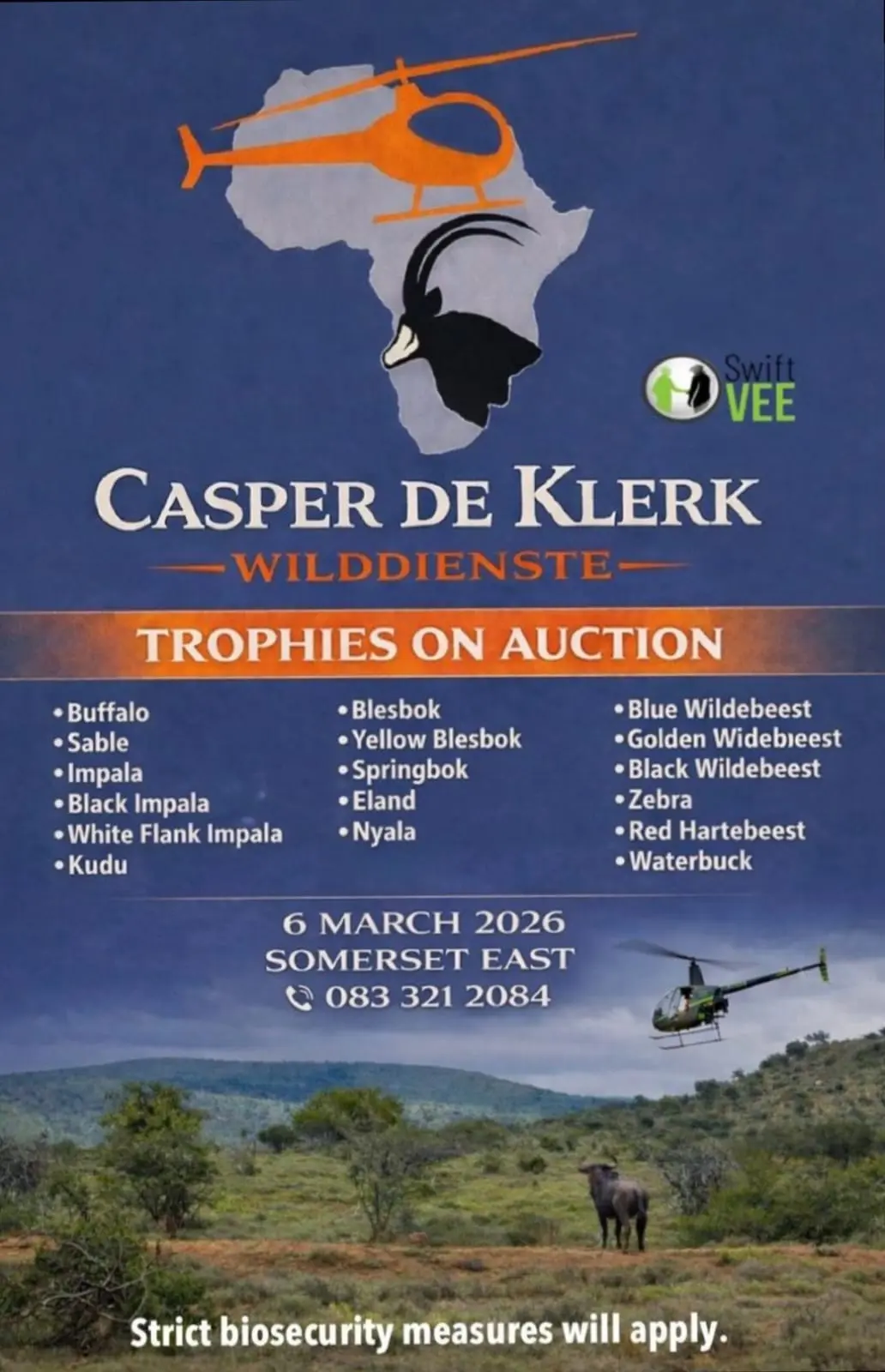At Casper De Klerk Wild, we bring together buyers and sellers in a professional and dynamic environment, offering a wide variety of premium game species.