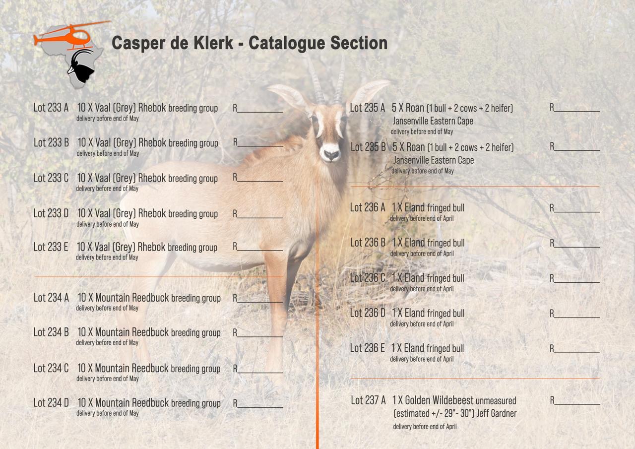 At Casper De Klerk Wild, we bring together buyers and sellers in a professional and dynamic environment, offering a wide variety of premium game species.